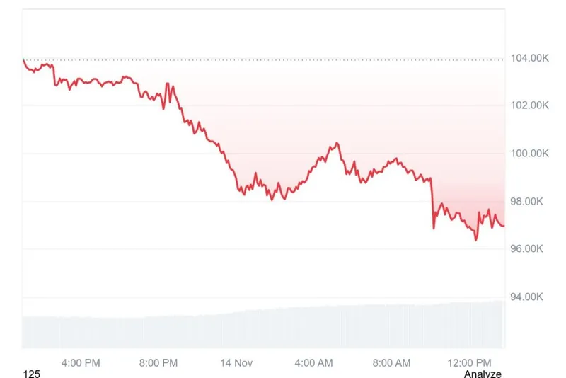 周五,比特币价格跌破10万美元,创下六个月以来的最低点。在亚洲交易时段,最大市值的加密货币价格降至96,682.00美元,目前交易价格为96,940美元。