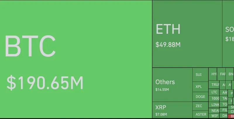数据显示,比特币在一小时内的清算金额达到了1.9065亿美元,而以太坊的清算金额为4988万美元。