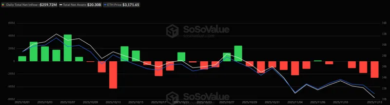 与此同时,美国以太坊ETF继续流出,11月13日再流出2.5972亿美元,净流入总额回落至133.1亿美元。