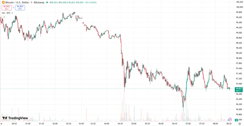 截至周五早晨,比特币跌破10万美元,现价为97,033美元。